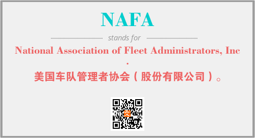 上述内容是“National Association of Fleet Administrators, Inc.”作为“NAFA”的缩写,解释为“美国车队管理者协会(股份有限公司)。”时的信息,以及英文缩略词NAFA所代表的英文单词,其对应的中文拼音、详细解释以及在英文中的流行度和相关分类、应用领域及应用示例等。