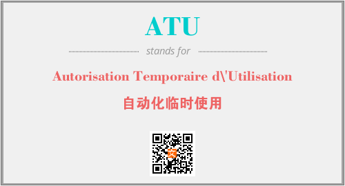 英文缩略词“ATU”经常作为“Autorisation Temporaire d\'Utilisation”的英文缩写来使用,中文表示:“自动化临时使用”。本文将详细介绍英文缩写词ATU所代表英文单词,其对应的中文拼音、详细解释以及在英语中的流行度。此外,还有关于缩略词ATU的分类、应用领域及相关应用示例等。
