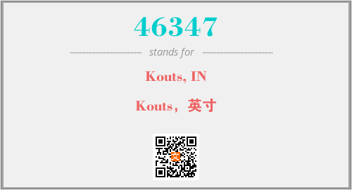 上述内容是“Kouts, IN”作为“46347”的缩写,解释为“Kouts,英寸”时的信息,以及英文缩略词46347所代表的英文单词,其对应的中文拼音、详细解释以及在英文中的流行度和相关分类、应用领域及应用示例等。