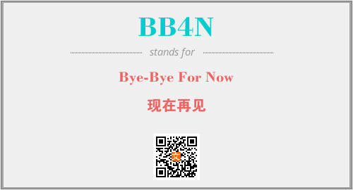 以上为Bye-Bye For Now英文缩略词BB4N的中文解释,以及该英文缩写在英语的流行度、分类和应用领域方面的信息。