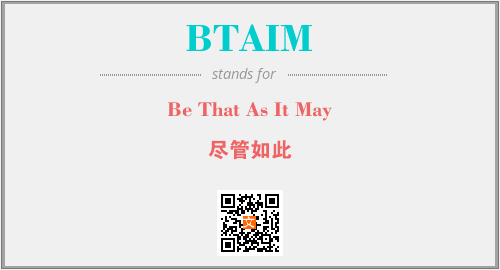 英文缩略词“BTAIM”经常作为“Be That As It May”的英文缩写来使用,中文表示:“尽管如此”。本文将详细介绍英文缩写词BTAIM所代表英文单词,其对应的中文拼音、详细解释以及在英语中的流行度。此外,还有关于缩略词BTAIM的分类、应用领域及相关应用示例等。