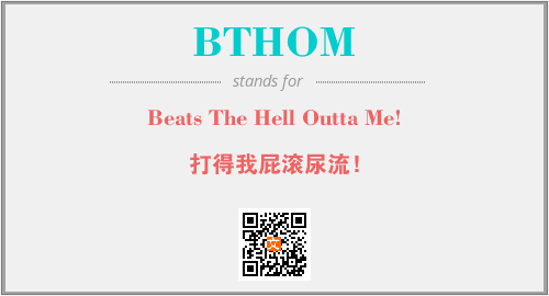 上述内容是“Beats The Hell Outta Me!”作为“BTHOM”的缩写,解释为“打得我屁滚尿流!”时的信息,以及英文缩略词BTHOM所代表的英文单词,其对应的中文拼音、详细解释以及在英文中的流行度和相关分类、应用领域及应用示例等。