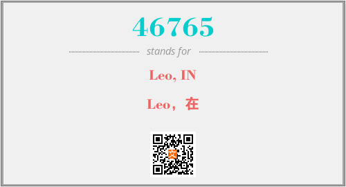 上述内容是“Leo, IN”作为“46765”的缩写,解释为“Leo,在”时的信息,以及英文缩略词46765所代表的英文单词,其对应的中文拼音、详细解释以及在英文中的流行度和相关分类、应用领域及应用示例等。