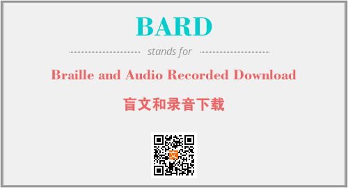 英文缩略词“BARD”经常作为“Braille and Audio Recorded Download”的英文缩写来使用,中文表示:“盲文和录音下载”。本文将详细介绍英文缩写词BARD所代表英文单词,其对应的中文拼音、详细解释以及在英语中的流行度。此外,还有关于缩略词BARD的分类、应用领域及相关应用示例等。