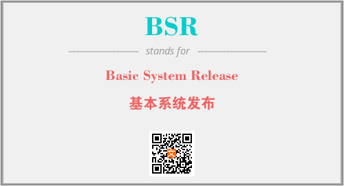 上述内容是“Basic System Release”作为“BSR”的缩写,解释为“基本系统发布”时的信息,以及英文缩略词BSR所代表的英文单词,其对应的中文拼音、详细解释以及在英文中的流行度和相关分类、应用领域及应用示例等。