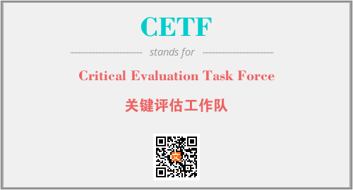 上述内容是“Critical Evaluation Task Force”作为“CETF”的缩写,解释为“关键评估工作队”时的信息,以及英文缩略词CETF所代表的英文单词,其对应的中文拼音、详细解释以及在英文中的流行度和相关分类、应用领域及应用示例等。