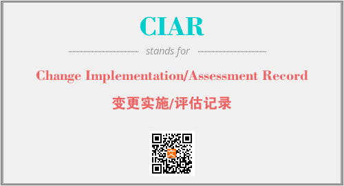 英文缩略词“CIAR”经常作为“Change Implementation/Assessment Record”的英文缩写来使用,中文表示:“变更实施/评估记录”。本文将详细介绍英文缩写词CIAR所代表英文单词,其对应的中文拼音、详细解释以及在英语中的流行度。此外,还有关于缩略词CIAR的分类、应用领域及相关应用示例等。