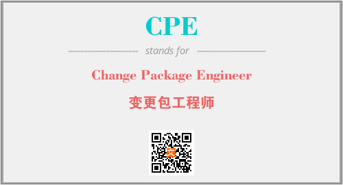 英文缩略词“CPE”经常作为“Change Package Engineer”的英文缩写来使用,中文表示:“变更包工程师”。本文将详细介绍英文缩写词CPE所代表英文单词,其对应的中文拼音、详细解释以及在英语中的流行度。此外,还有关于缩略词CPE的分类、应用领域及相关应用示例等。