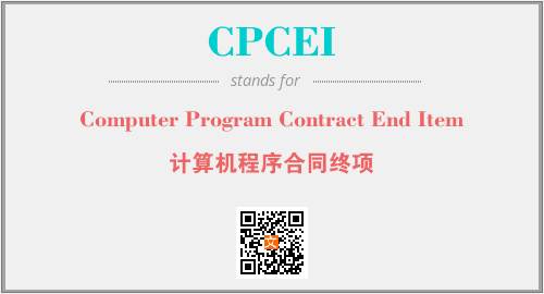英文缩略词“CPCEI”经常作为“Computer Program Contract End Item”的英文缩写来使用,中文表示:“计算机程序合同终项”。本文将详细介绍英文缩写词CPCEI所代表英文单词,其对应的中文拼音、详细解释以及在英语中的流行度。此外,还有关于缩略词CPCEI的分类、应用领域及相关应用示例等。