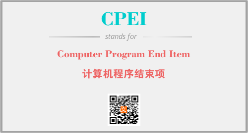 上述内容是“Computer Program End Item”作为“CPEI”的缩写,解释为“计算机程序结束项”时的信息,以及英文缩略词CPEI所代表的英文单词,其对应的中文拼音、详细解释以及在英文中的流行度和相关分类、应用领域及应用示例等。