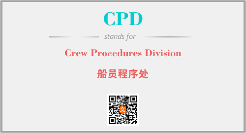 英文缩略词“CPD”经常作为“Crew Procedures Division”的英文缩写来使用,中文表示:“船员程序处”。本文将详细介绍英文缩写词CPD所代表英文单词,其对应的中文拼音、详细解释以及在英语中的流行度。此外,还有关于缩略词CPD的分类、应用领域及相关应用示例等。