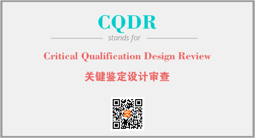 上述内容是“Critical Qualification Design Review”作为“CQDR”的缩写,解释为“关键鉴定设计审查”时的信息,以及英文缩略词CQDR所代表的英文单词,其对应的中文拼音、详细解释以及在英文中的流行度和相关分类、应用领域及应用示例等。