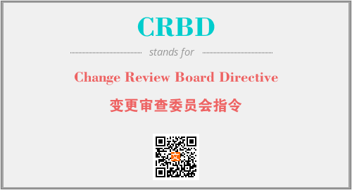 英文缩略词“CRBD”经常作为“Change Review Board Directive”的英文缩写来使用,中文表示:“变更审查委员会指令”。本文将详细介绍英文缩写词CRBD所代表英文单词,其对应的中文拼音、详细解释以及在英语中的流行度。此外,还有关于缩略词CRBD的分类、应用领域及相关应用示例等。