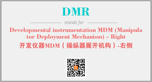 上述内容是“Developmental instrumentation MDM (Manipulator Deployment Mechanism) - Right”作为“DMR”的缩写,解释为“开发仪器MDM(操纵器展开机构)-右侧”时的信息,以及英文缩略词DMR所代表的英文单词,其对应的中文拼音、详细解释以及在英文中的流行度和相关分类、应用领域及应用示例等。