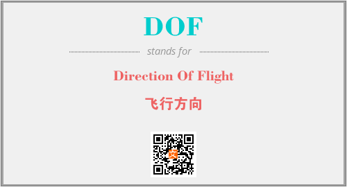 上述内容是“Direction Of Flight”作为“DOF”的缩写,解释为“飞行方向”时的信息,以及英文缩略词DOF所代表的英文单词,其对应的中文拼音、详细解释以及在英文中的流行度和相关分类、应用领域及应用示例等。