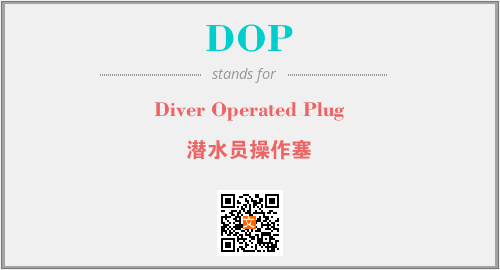 上述内容是“Diver Operated Plug”作为“DOP”的缩写,解释为“潜水员操作塞”时的信息,以及英文缩略词DOP所代表的英文单词,其对应的中文拼音、详细解释以及在英文中的流行度和相关分类、应用领域及应用示例等。