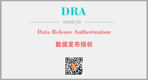上述内容是“Data Release Authorization”作为“DRA”的缩写,解释为“数据发布授权”时的信息,以及英文缩略词DRA所代表的英文单词,其对应的中文拼音、详细解释以及在英文中的流行度和相关分类、应用领域及应用示例等。