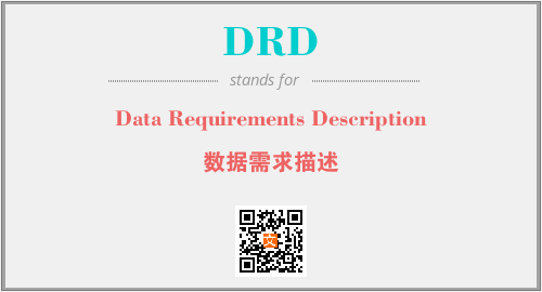 英文缩略词“DRD”经常作为“Data Requirements Description”的英文缩写来使用,中文表示:“数据需求描述”。本文将详细介绍英文缩写词DRD所代表英文单词,其对应的中文拼音、详细解释以及在英语中的流行度。此外,还有关于缩略词DRD的分类、应用领域及相关应用示例等。