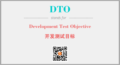 英文缩略词“DTO”经常作为“Development Test Objective”的英文缩写来使用,中文表示:“开发测试目标”。本文将详细介绍英文缩写词DTO所代表英文单词,其对应的中文拼音、详细解释以及在英语中的流行度。此外,还有关于缩略词DTO的分类、应用领域及相关应用示例等。