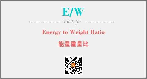 上述内容是“Energy to Weight Ratio”作为“E/W”的缩写,解释为“能量重量比”时的信息,以及英文缩略词E/W所代表的英文单词,其对应的中文拼音、详细解释以及在英文中的流行度和相关分类、应用领域及应用示例等。