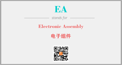 英文缩略词“EA”经常作为“Electronic Assembly”的英文缩写来使用,中文表示:“电子组件”。本文将详细介绍英文缩写词EA所代表英文单词,其对应的中文拼音、详细解释以及在英语中的流行度。此外,还有关于缩略词EA的分类、应用领域及相关应用示例等。