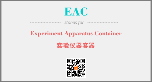 上述内容是“Experiment Apparatus Container”作为“EAC”的缩写,解释为“实验仪器容器”时的信息,以及英文缩略词EAC所代表的英文单词,其对应的中文拼音、详细解释以及在英文中的流行度和相关分类、应用领域及应用示例等。