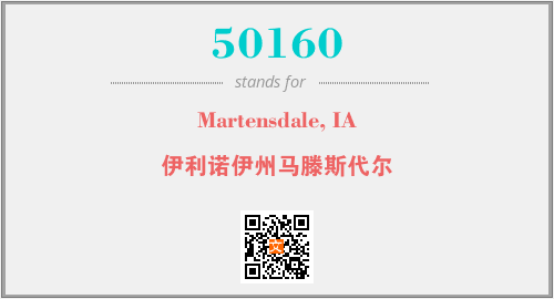 上述内容是“Martensdale, IA”作为“50160”的缩写,解释为“伊利诺伊州马滕斯代尔”时的信息,以及英文缩略词50160所代表的英文单词,其对应的中文拼音、详细解释以及在英文中的流行度和相关分类、应用领域及应用示例等。