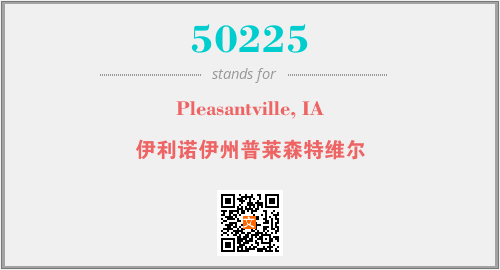 上述内容是“Pleasantville, IA”作为“50225”的缩写,解释为“伊利诺伊州普莱森特维尔”时的信息,以及英文缩略词50225所代表的英文单词,其对应的中文拼音、详细解释以及在英文中的流行度和相关分类、应用领域及应用示例等。