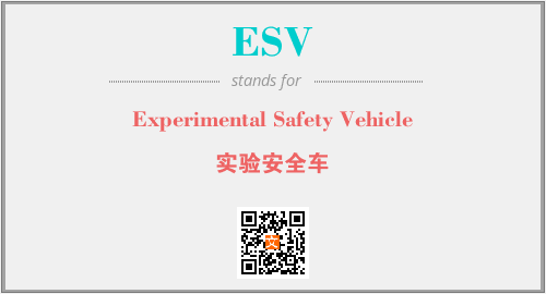 英文缩略词“ESV”经常作为“Experimental Safety Vehicle”的英文缩写来使用,中文表示:“实验安全车”。本文将详细介绍英文缩写词ESV所代表英文单词,其对应的中文拼音、详细解释以及在英语中的流行度。此外,还有关于缩略词ESV的分类、应用领域及相关应用示例等。