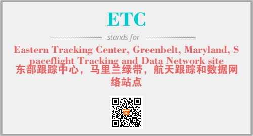 上述内容是“Eastern Tracking Center, Greenbelt, Maryland, Spaceflight Tracking and Data Network site”作为“ETC”的缩写,解释为“东部跟踪中心,马里兰绿带,航天跟踪和数据网络站点”时的信息,以及英文缩略词ETC所代表的英文单词,其对应的中文拼音、详细解释以及在英文中的流行度和相关分类、应用领域及应用示例等。