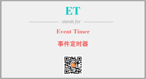 英文缩略词“ET”经常作为“Event Timer”的英文缩写来使用,中文表示:“事件定时器”。本文将详细介绍英文缩写词ET所代表英文单词,其对应的中文拼音、详细解释以及在英语中的流行度。此外,还有关于缩略词ET的分类、应用领域及相关应用示例等。