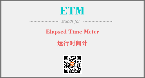 英文缩略词“ETM”经常作为“Elapsed Time Meter”的英文缩写来使用,中文表示:“运行时间计”。本文将详细介绍英文缩写词ETM所代表英文单词,其对应的中文拼音、详细解释以及在英语中的流行度。此外,还有关于缩略词ETM的分类、应用领域及相关应用示例等。