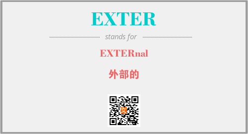 上述内容是“EXTERnal”作为“EXTER”的缩写,解释为“外部的”时的信息,以及英文缩略词EXTER所代表的英文单词,其对应的中文拼音、详细解释以及在英文中的流行度和相关分类、应用领域及应用示例等。