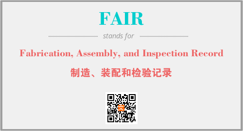 上述内容是“Fabrication, Assembly, and Inspection Record”作为“FAIR”的缩写,解释为“制造、装配和检验记录”时的信息,以及英文缩略词FAIR所代表的英文单词,其对应的中文拼音、详细解释以及在英文中的流行度和相关分类、应用领域及应用示例等。