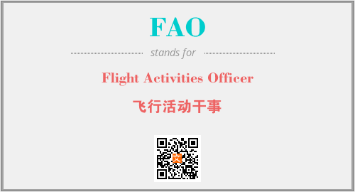 英文缩略词“FAO”经常作为“Flight Activities Officer”的英文缩写来使用,中文表示:“飞行活动干事”。本文将详细介绍英文缩写词FAO所代表英文单词,其对应的中文拼音、详细解释以及在英语中的流行度。此外,还有关于缩略词FAO的分类、应用领域及相关应用示例等。
