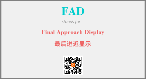 英文缩略词“FAD”经常作为“Final Approach Display”的英文缩写来使用,中文表示:“最后进近显示”。本文将详细介绍英文缩写词FAD所代表英文单词,其对应的中文拼音、详细解释以及在英语中的流行度。此外,还有关于缩略词FAD的分类、应用领域及相关应用示例等。