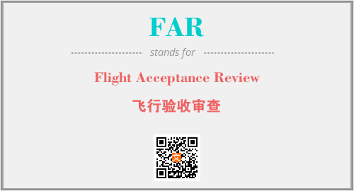 上述内容是“Flight Acceptance Review”作为“FAR”的缩写,解释为“飞行验收审查”时的信息,以及英文缩略词FAR所代表的英文单词,其对应的中文拼音、详细解释以及在英文中的流行度和相关分类、应用领域及应用示例等。