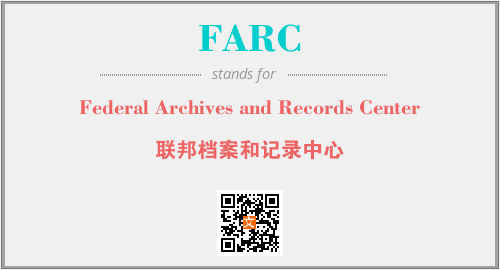 上述内容是“Federal Archives and Records Center”作为“FARC”的缩写,解释为“联邦档案和记录中心”时的信息,以及英文缩略词FARC所代表的英文单词,其对应的中文拼音、详细解释以及在英文中的流行度和相关分类、应用领域及应用示例等。
