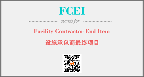 英文缩略词“FCEI”经常作为“Facility Contractor End Item”的英文缩写来使用,中文表示:“设施承包商最终项目”。本文将详细介绍英文缩写词FCEI所代表英文单词,其对应的中文拼音、详细解释以及在英语中的流行度。此外,还有关于缩略词FCEI的分类、应用领域及相关应用示例等。