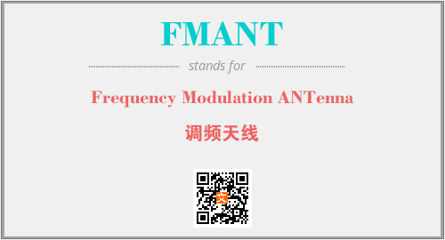 上述内容是“Frequency Modulation ANTenna”作为“FMANT”的缩写,解释为“调频天线”时的信息,以及英文缩略词FMANT所代表的英文单词,其对应的中文拼音、详细解释以及在英文中的流行度和相关分类、应用领域及应用示例等。