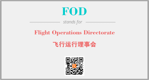 英文缩略词“FOD”经常作为“Flight Operations Directorate”的英文缩写来使用,中文表示:“飞行运行理事会”。本文将详细介绍英文缩写词FOD所代表英文单词,其对应的中文拼音、详细解释以及在英语中的流行度。此外,还有关于缩略词FOD的分类、应用领域及相关应用示例等。