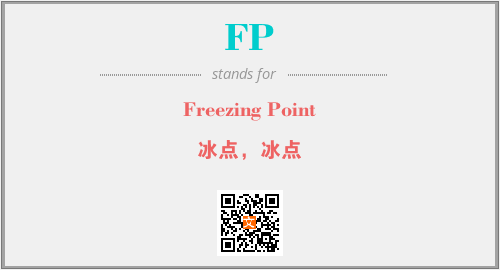 上述内容是“Freezing Point”作为“FP”的缩写,解释为“冰点,冰点”时的信息,以及英文缩略词FP所代表的英文单词,其对应的中文拼音、详细解释以及在英文中的流行度和相关分类、应用领域及应用示例等。
