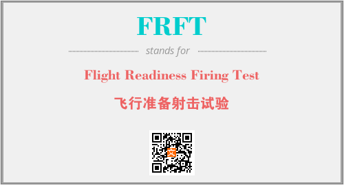 英文缩略词“FRFT”经常作为“Flight Readiness Firing Test”的英文缩写来使用,中文表示:“飞行准备射击试验”。本文将详细介绍英文缩写词FRFT所代表英文单词,其对应的中文拼音、详细解释以及在英语中的流行度。此外,还有关于缩略词FRFT的分类、应用领域及相关应用示例等。