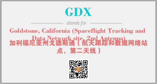 上述内容是“Goldstone, California (Spaceflight Tracking and Data Network site, 2nd Antenna)”作为“GDX”的缩写,解释为“加利福尼亚州戈德斯通(航天跟踪和数据网络站点,第二天线)”时的信息,以及英文缩略词GDX所代表的英文单词,其对应的中文拼音、详细解释以及在英文中的流行度和相关分类、应用领域及应用示例等。