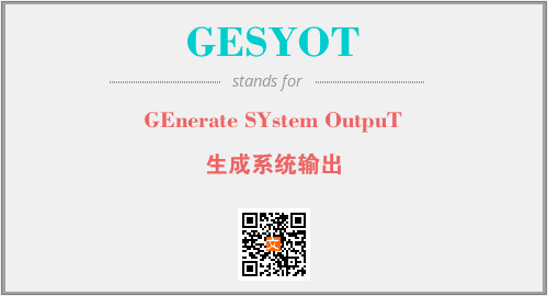 英文缩略词“GESYOT”经常作为“GEnerate SYstem OutpuT”的英文缩写来使用,中文表示:“生成系统输出”。本文将详细介绍英文缩写词GESYOT所代表英文单词,其对应的中文拼音、详细解释以及在英语中的流行度。此外,还有关于缩略词GESYOT的分类、应用领域及相关应用示例等。
