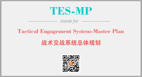 英文缩略词“TES-MP”经常作为“Tactical Engagement System-Master Plan”的英文缩写来使用,中文表示:“战术交战系统总体规划”。本文将详细介绍英文缩写词TES-MP所代表英文单词,其对应的中文拼音、详细解释以及在英语中的流行度。此外,还有关于缩略词TES-MP的分类、应用领域及相关应用示例等。