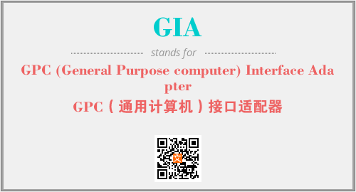 英文缩略词“GIA”经常作为“GPC (General Purpose computer) Interface Adapter”的英文缩写来使用,中文表示:“GPC(通用计算机)接口适配器”。本文将详细介绍英文缩写词GIA所代表英文单词,其对应的中文拼音、详细解释以及在英语中的流行度。此外,还有关于缩略词GIA的分类、应用领域及相关应用示例等。