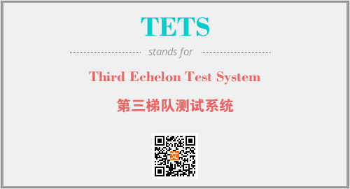 英文缩略词“TETS”经常作为“Third Echelon Test System”的英文缩写来使用,中文表示:“第三梯队测试系统”。本文将详细介绍英文缩写词TETS所代表英文单词,其对应的中文拼音、详细解释以及在英语中的流行度。此外,还有关于缩略词TETS的分类、应用领域及相关应用示例等。