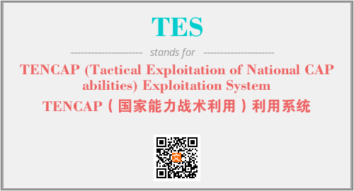 上述内容是“TENCAP (Tactical Exploitation of National CAPabilities) Exploitation System”作为“TES”的缩写,解释为“TENCAP(国家能力战术利用)利用系统”时的信息,以及英文缩略词TES所代表的英文单词,其对应的中文拼音、详细解释以及在英文中的流行度和相关分类、应用领域及应用示例等。