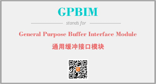 上述内容是“General Purpose Buffer Interface Module”作为“GPBIM”的缩写,解释为“通用缓冲接口模块”时的信息,以及英文缩略词GPBIM所代表的英文单词,其对应的中文拼音、详细解释以及在英文中的流行度和相关分类、应用领域及应用示例等。
